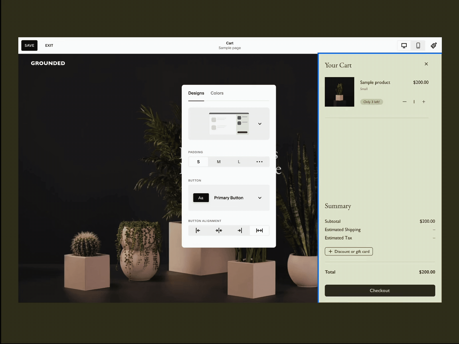 Redesign of Squarespace’s cart and checkout ecosystem to add key features, offer personalized set up based on seller profile, improve customizability, and create a flexible and contextual styling system.